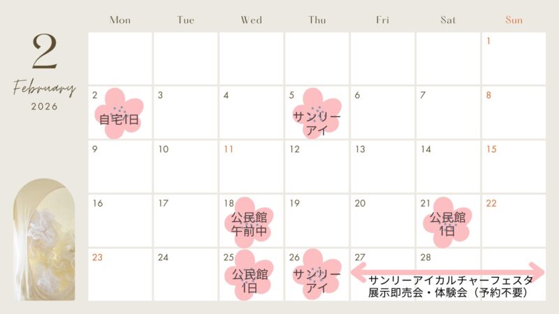 2月の予定が確定しましたのでお知らせします。