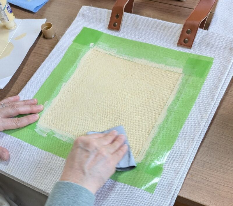 粗目の生地の隙間を埋めるようにしっかり塗ります。