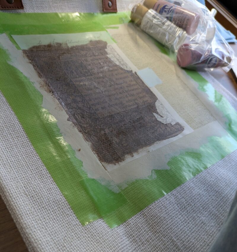 失敗したシルクスクリーンを覆い隠すように、ベースコート部分全体を茶色で塗ってしまいましょう。デザイン部分が隠れないようなら少し濃い目の絵の具もいいと思います。