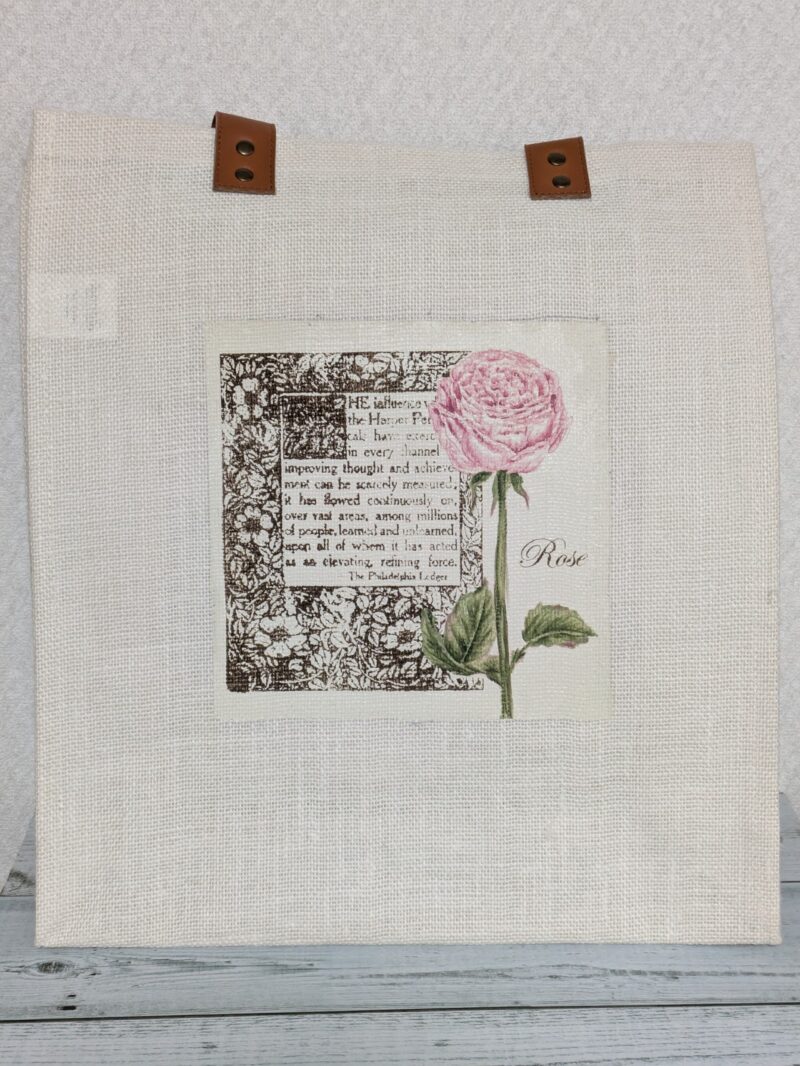 薔薇のシルクスクリーンを花の色で刷ったことで、花が自然に仕上がり、葉のアクセントも自然に入ります。